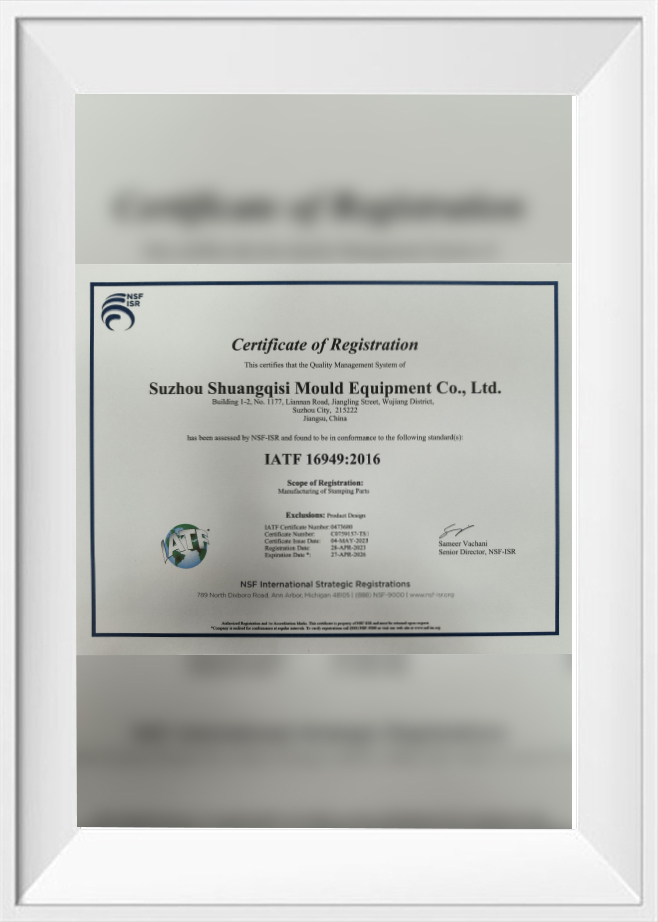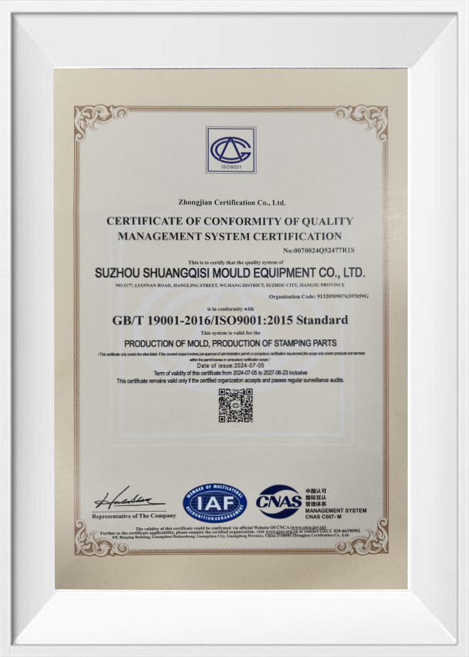 Certificat de certification du système de gestion de la qualité